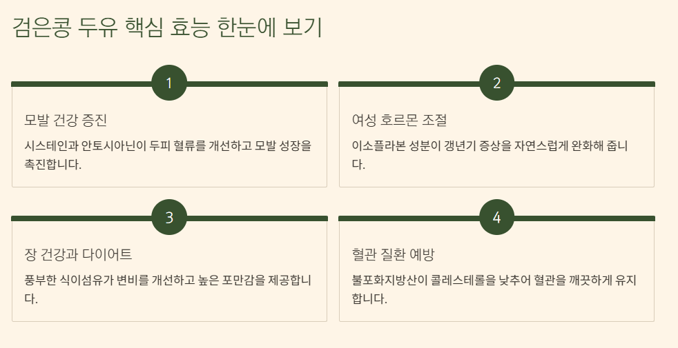 검은콩 두유를 찾는 분들의 가장 큰 목적 중 하나는 역시 머리카락 건강일 거예요. 저 또한 머리카락이 가늘어지고 힘이 없다는 느낌을 받을 때 가장 먼저 찾는 것이 바로 이 검은콩 두유였습니다. 검은콩에는 모발 성장에 꼭 필요한 단백질과 비타민 B1, B2가 풍부하게 들어있죠.