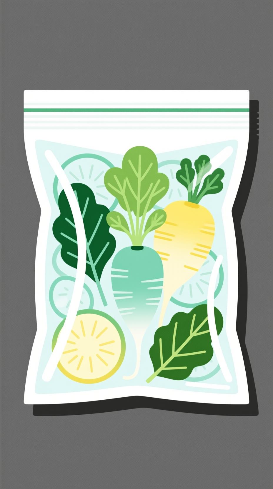 신문지로 감싼 무를 다시 비닐 팩이나 지퍼백에 넣고, 공기가 최대한 통하지 않도록 입구를 묶거나 닫아줍니다. 이중으로 밀봉하는 것이 수분 증발을 막아 아삭함을 유지하는 핵심입니다.
